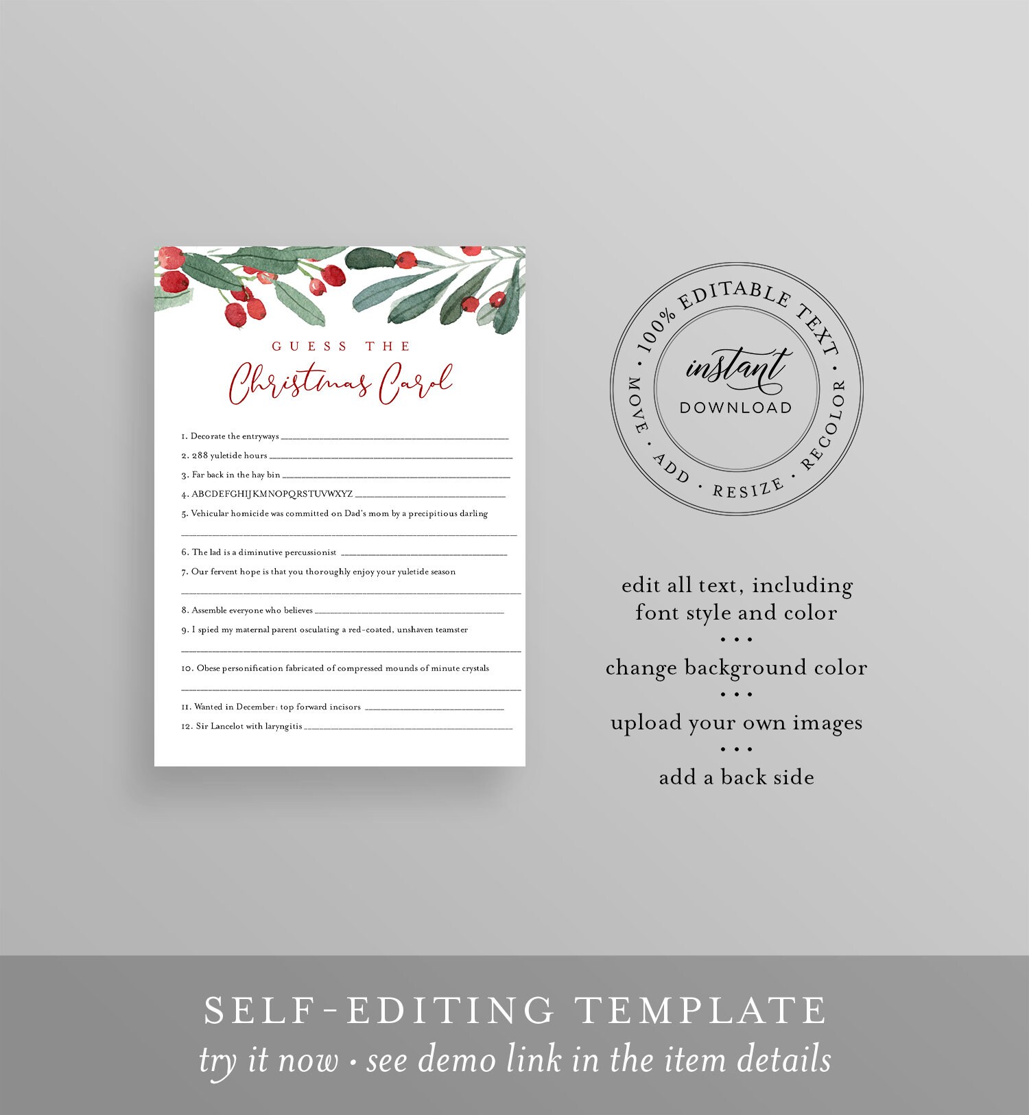 This Christmas Carol Trivia game is an instant download. Access your template within minutes of purchase and edit in Templett - A fully customizable template editor that allows you to personalize your printable directly in your web browser. No software to install or fonts to download.