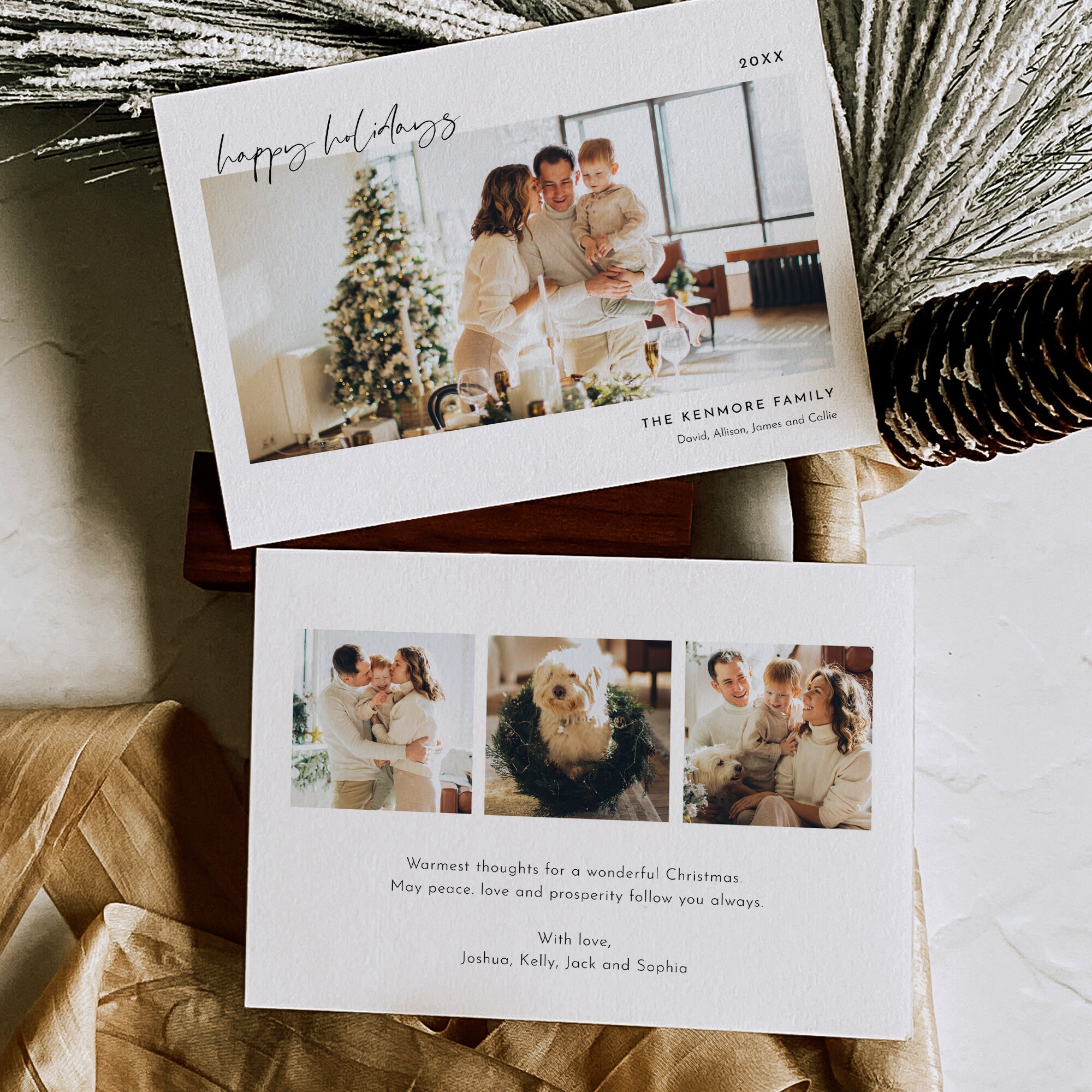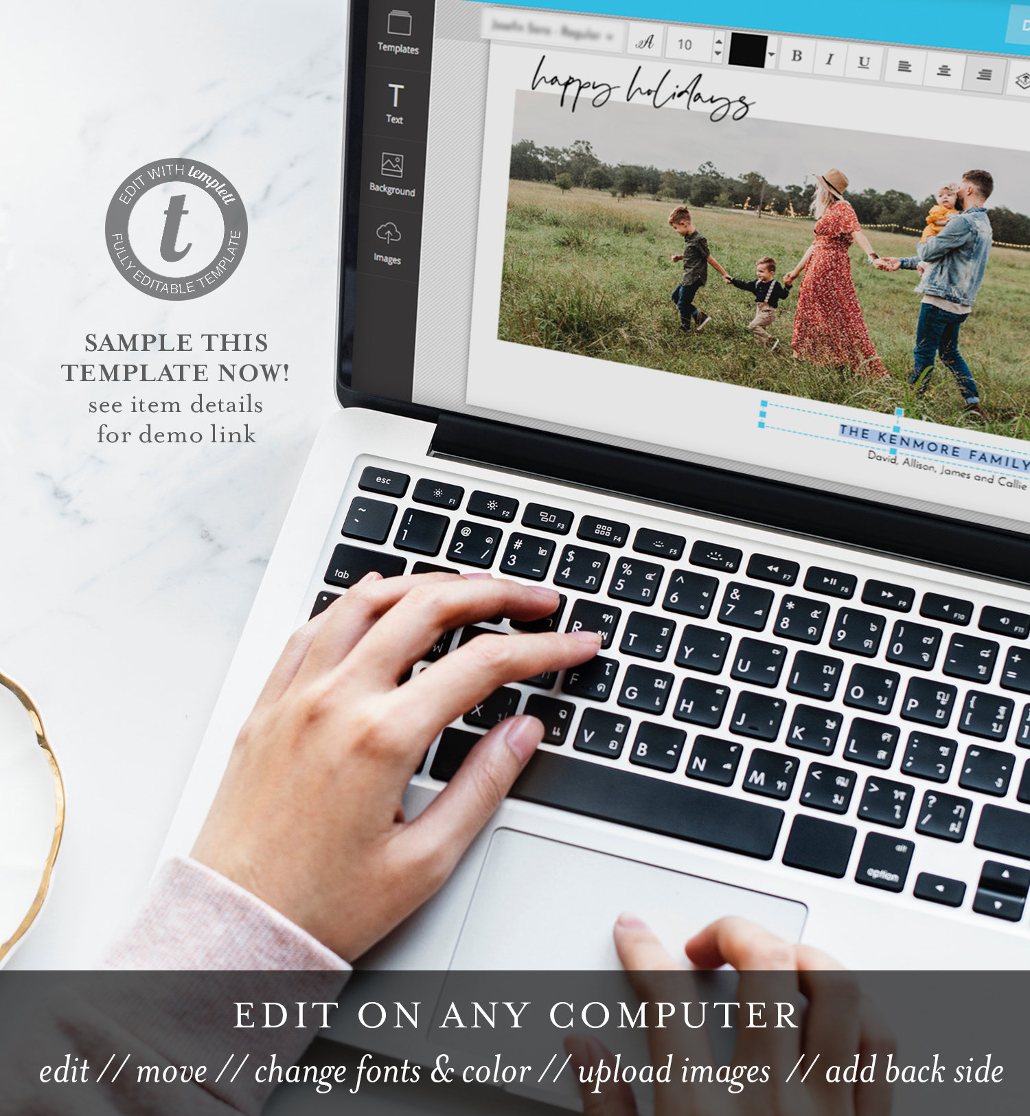 This photo holiday card template is an instant download. Access your template within minutes of purchase and edit using Templett - A fully customizable template editor that allows you to personalize your printable directly in your web browser. No software to install or fonts to download.