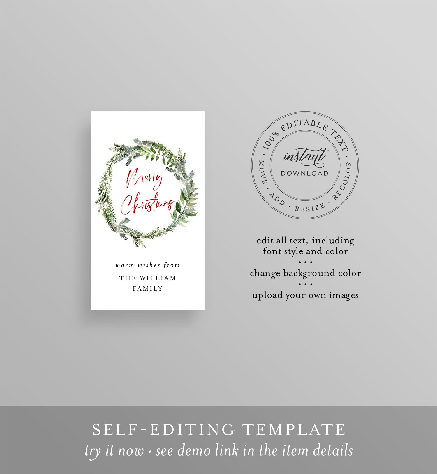 This listing is an instant download that includes a high resolution, printable Christmas Tag Template. Design and create as many tags as you like. Use it for a wedding, bridal shower, baby shower or birthday party. Access your template within minutes of purchase and edit in Templett - A fully customizable template editor that allows you to personalize your printable directly in your web browser. No software to install or fonts to download.