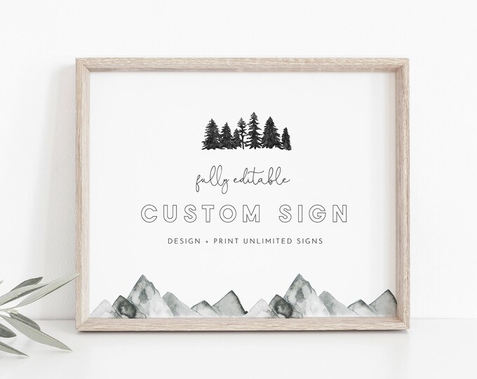 Lake Welcome Sign, Printable Rustic Mountain Pine Wedding or Bridal Shower Sign, Instant Download, Editable Template, Templett #017A-196LS